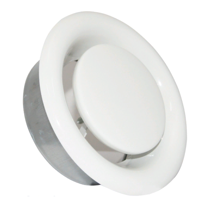 вытяжной анемостат, материал: металл, форма: круглый, тип установки: настенный/потолочный, управление: механическое, присоединительная муфта, диаметр воздуховода: 160 мм