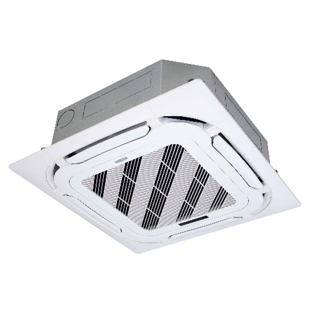 кассетная сплит-система, обогрев и охлаждение помещений до 100 м², мощность охлаждения 10550 Вт / обогрева 11690 Вт, потребляемая мощность при охлаждении 3300 Вт / обогреве 3500 Вт, режим вентиляции, управление с пульта, уровень шума внутреннего блока 44/49 дБ